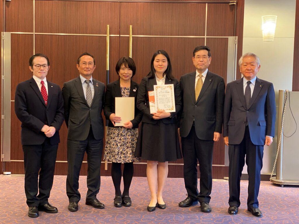 昨年4月よりお世話している米山奨学生の洪 智恩さんへ、”米山奨学生期間修了証書”と記念品をお渡ししました。