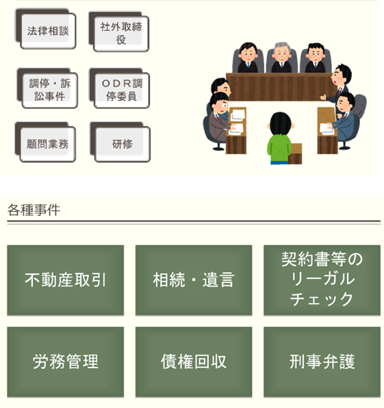 ・「弁護士は、当事者その他関係人の依頼又は官公署の委嘱によって、訴訟事件、非訟事件及び審査請求、再調査の請求、再審査請求等行政庁に対する不服申立事件に関する行為その他一般の法律事務を行うことを職務とする」(弁護士法3条)