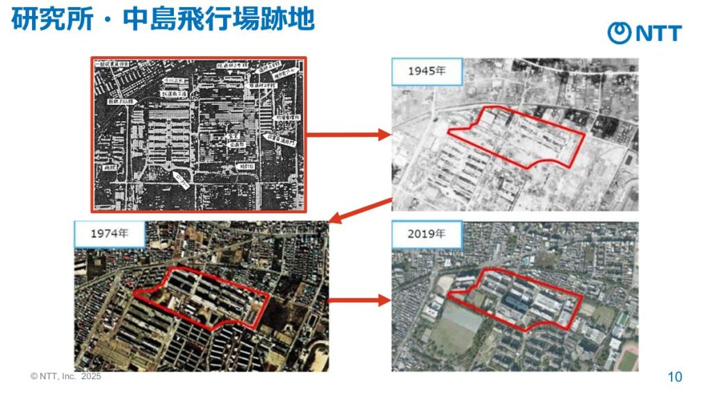 そして再び、会社の話に戻ります。歴史をさかのぼり、武蔵野研究開発センタの敷地は、もともと中島飛行場の工場であった場所・跡地に設けられています。