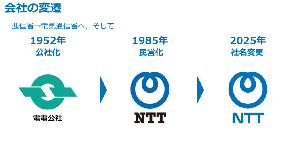 いまでは、電信や電話といったことば自体も、時代や会社の戦略と合わなくなったことも加速して、昨年に「NTT株式会社」に社名変更しました。少しマイルドなロゴとなり、お客様に名刺をお渡しした際などには「なんかやわらかな印象になりましたね」と声をかけていただけることも多いです。