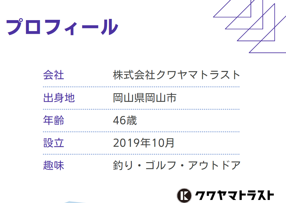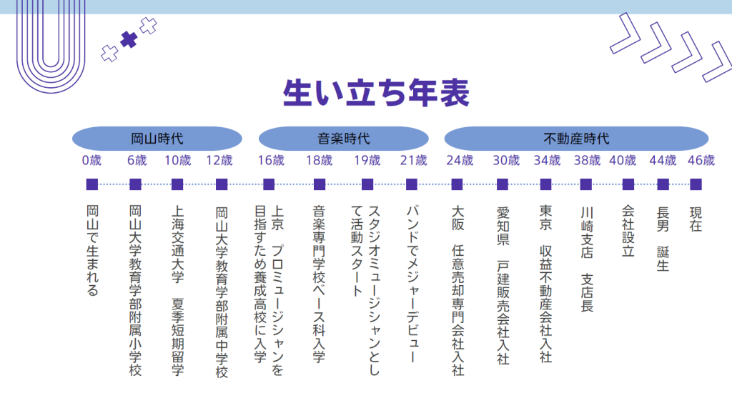 1月に鈴木基樹会長にご紹介いただき入会した桑山です、本日はよろしくお願いします。まずは、自己紹介から・・・“プロフィール”と、岡山時代、音楽時代、不動産時代と“生い 立ち年表”を作ってみましたのでご覧ください。